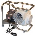 This electric blower features a GFI power cord, a 3/4HP electric motor,115 VAC, 12 amp, 750 low/1570 high cfm free air delivery, an 8” intake and exhaust flange, an aluminum non-sparking blower wheel, a powder coat steel frame and steel safety guards. Its weight is 64 pounds, size is 20”Wx 19”H x 19”D.