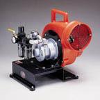 Ideal for areas where a compressor is readily available, this air-driven model requires 30 CFM at 40 psi. It uses an aluminum fan for explosion-proof requirements and includes a steel base, polyethylene housing, 2-stage filter, regulator, and lubricator. If used in hazardous environments, use statically conductive ducting.