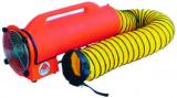 Air systems manufactures a combination ventilation fan and duct storage unit to meet the most demanding customer needs. The rugged polyethylene duct cannister is securely attached to one of our rugged lightweight fans to make an ideal ventilator for the customer who wants a one piece ventilation system. The AC version, SVF-8AC, has a 1/3 HP -115 VAC, an 8” diameter outlet and 1395 cfm free air.