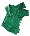 Economical PVC Rainwear. Provides protection from the elements and light splash coverage during clean-up and general maintenance. Jackets feature 4-snap front, 2 patch pockets with flaps, adjustable cuffs, raglan sleeves, and detachable drawstring hood. Squall 3-piece suit has bib overalls, with snap fly front, and take-up snaps at waist and ankles for flexible extended wear. Please specify size when ordering. Sold individually.