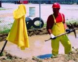 The Safetyflex® Flame Resistant Specialty PVC On Polyester Suit Combines Tough Protection And Comfortable Fit. Made to resist industrial acids, chemicals, and caustics, Safetyflex is engineered for protection. Heavy exterior coating for excellent permeation performance. High jacket collar with velcro throat closure for increased splash and drip protection. All seams are Therm-O-Rad sealed. No needle holes for chemicals to penetrate.