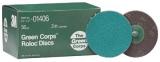 Quick change button. Resin bonded for heat resistance. Can be ran wet or dry. Roloc™ disc constructed on a YF weight water resistant polyester cloth backing. Disc grade can be determined easily by the color of the plastic holding buttons (50 green 36 brown 24 black)