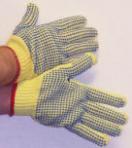 This is a 7 gauge knit Kevlar string glove plated with cotton on the inside. It is available in one or two sided dots for grip and cut resistance and in men's and ladies’ sizes. Sold per pair.