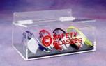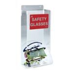 Stores glasses or goggles. Great for visitor spectacles. Wall mount or free standing. Made of clear 1/8" high impact PETG. 9"Wx3-1/4"Hx6-3/4"D