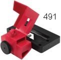 Prevent Unintentional Energization of Electric Circuits. Versatile covers lock out most circuit breakers. No. 491 oversized breaker device fits toggle switches to 2-1/2" wide x 7/8" thick. No. 492 for single pole circuit switches having recessed side-holes. No. 493 with convenient thumbwheel, for 277 and 120 volt switches. No. 494 with convenient thumbwheel, for 480/600 volt switches. No. 495 universal multi-pole devices for breakers with tie-bar.