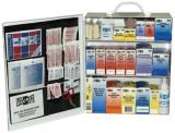 Contractors first aid kit providing an assortment of first aid supplies, including bandages, gauze pads, tape and ointment. Perfect for work-vehicles and job-site safety. Kit is contained in a sturdy plastic case with gasket. Portable; Wall Mounted