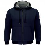 Hood with drawstring closure, Zipper front, Rib knit cuff and waistband, Fully lined with waffle lining, Hand-warmer unlined pockets. Outer Fabric: Flame-resistant, 12.5 oz. (425 g/m²) 95% Cotton/5% Spandex Brushed Fleece. Waffle Lining: Flame-resistant, 7.6 oz. (260 g/m²) 100% Cotton Waffle Texture Knit. Arc Rating EBT 54 calories/cm².