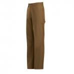 (BROWN) One-piece waistband with button closure › Five jean style pockets › Two deep scoop pockets › Two oversized reinforced hip pockets › Rule pocket and utility pocket on right leg › Hammer loop and utility pocket on left leg › Triple-needle felled outseam. Fabric Westex Ultrasoft® Flame-resistant, 11.0 oz. (390 g/m²) 88% Cotton / 12% Nylon, Water Repellant. Arc Rating ATPV 15 calories/cm²