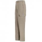 (Khaki) Interlined waistband with hook-and-bar closure › Two slack style front pockets › Two set in hip pockets, left hip pocket with button closure › Left leg cargo pocket and right leg utility pocket › Women's pant has button closure. Arc Rating ATPV 9.0 calories/cm². Flame Resistant 7 oz. (235 g/m²) 48% Modacryclic / 37% Lyocell / 15% Aramid.