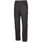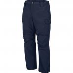 One-piece waistband with concealed button closure, Two scoop front pockets, concealed pocket on right pocket bag, Two hip patch pockets, Full crotch gusset, Utility loop extension on front belt loop, Cargo pocket with snap closures on left leg, Double utility pocket on right leg, Double articulated knees. Ripstop Flame-resistant, 6.9oz (235g/m²) 65% Cotton/35% Polyester. Arc Rating ATPV 9.0 calories/cm2.