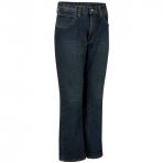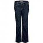 This stretch denim jean fits like your weekend jeans and moves with you while you work. Features five jean-style pockets and bootcut leg openings. These flame-resistant jeans feature a soft pre-wash and sanded fabric for a modern look, while providing CAT2 protection and NFPA® 2112 compliance. It has a one-piece waistband with metal button closure. The metal button is not exposed to your skin. Certifications Level 1: ASTM F1506, NFPA 2112, NFPA 70E.