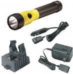 Waterproof safety approved. Tail cap On/Off switching. Virtually indestructible non-conductive polymer which features a rubber face cap for impact and shock resistance. Wrist lanyard connection. C-cell lights have a spring loaded clip. Includes batteries (except C-Cell models)