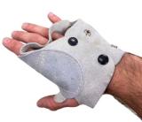 3.5 oz. pearl grey split leather. Quilted leather patch on the palm. VELCRO® closure at back of the wrist.