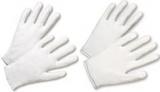 Cotton lightweight inspectors gloves. Use by itself or as a liner. Lightweight cotton, bleached white, two-piece construction, ambidextrous pattern glove. Can be laundered, but economical enough to be used as a disposable. Used for product protection during light manufacturing or inspection. Unhemmed and available in ladies’ and men’s sizes. Sold per dozen pair.