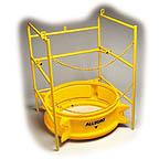 Designed to protect an area 33" x 33", this 42" high guard rail collapses to only 27" square x 4" for easy storage. Weighing 34 lbs., the strong, one inch tubular .078 gauge steel construction is powder-coated in safety yellow for a durable finish and high visibility. Simple one-piece construction offers easy, no-tools assembly. Rail locks open and two hooking chains provide protected entry and exit.