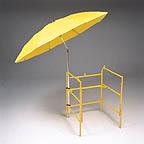 84" diameter umbrella offers low cost protection from sun and rain. It features heavy duty vinyl in safety yellow with a sturdy, 92" two-part metal pole that tilts for convenience. It can be pushed into the ground or strapped to the manhole guard rail. For easy storage, it collapses to 4" x 6" diameter.