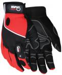 Re-designed finger tip pattern reduces seams and enhances finger tip sensitivity. Lycra panels between fingers add comfort and mobility. Narrower elastic cuff for added comfort. Ultra-thin TPR (Thermal Plastic Rubber) pull-tab with hook and loop closure. Supple breathable durable Clarino? palm provides firm grip. Dual-layered fingertips and thumb for reduced wear and increased protection. Two-way stretch Spandex padded top features form-fitting elasticity.