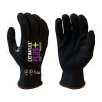 18 Gauge, ExtraFlex Plus® Black Engineered Liner With Black HCT® Micro Foam Nitrile Palm Coating, Thumb crotch Reinforcement, Touchscreen compatible, ANSI 4, the MicroFoam coating ensures excellent oil grip. Can be used in Automotive Manufacturing, Metal Stamping, Construction, Sheet Metal Handling, and Steel Processing applications