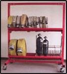 Save time and eliminate back strain from carrying hoses with our Mobile Hose Cart. Mobile Hose Cart is a great way to replace old handmade storage racks. Four heavy duty casters with brakes allows for ease of rolling and hold the cart in place when loading or unloading. Heavy duty steel rails easily support 100' coils. An optional 20" x 31" cover plate provides a flat surface for holding bottle carriers or other items.