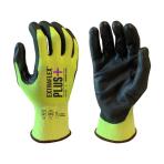 15 Gauge, ExtraFlex Plus® Hivis Engineered Liner With Black Polyurethane Palm Coating, Thumb crotch Reinforcement, Touchscreen compatible, ANSI 5. Can be used in Metal Fabrication, Metal Stamping, Steel Processing, Steel Handling, and Recycling applications