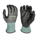 18g Gray Kyorene Pro® Liner With Black Polyurethane Palm Coating, Thumbcrotch Reinforcement, Touchscreen compatible, ANSI A4, silicone free, no stainless steel or fiberglass, thermal regulating and odor neutralizing.Can be used in Automotive Manufacturing, Sheet Metal Handling, Metal Stamping, Steel Processing and Construction applications