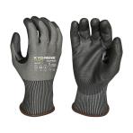 15g Gray Kyorene Pro® Liner With Black Polyurethane Palm Coating, Thumbcrotch Reinforcement, ANSI A5, Touchscreen compatible, silicone free, no stainless steel or fiberglass, thermal regulating and odor neutralizing. Can be used in Automotive Manufacturing, Sheet Metal Handling, Metal Stamping, and Plastics applications