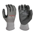 18g Gray Kyorene Pro® Liner With Black Polyurethane Palm Coating, Thumbcrotch Reinforcement, Touchscreen compatible,ANSI A6, silicone free, no stainless steel or fiberglass, thermal regulating and odor neutralizing. Can be used in Automotive Manufacturing, Metal Fabrication, Steel Processing, and Construction applications