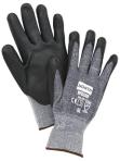13g Gray Kyorene® Liner With Black Polyurethane Palm Coating And Reinforced Thumb Crotch, ANSI A3, Touchscreen compatible, thermal regulating, and odor neutralizing.Can be used in Automotive Manufacturing, Appliance Manufacturing, Metal Stamping, Sheet Metal Handling and Construction applications