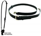 Plain black leather radio strap bundle contains 1-6543-1 - 1.25" black strap w mic loop & scissors snap, 1-5425-1 Anti sway strap, and 2-5426-1 Cord keepers. These are available in standard size (53" - 62") and X Large size (61"-70"). Radio holder sold separately.