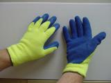This glove features blue latex palm coating, 10 gauge Thermal Lime Green poly/cotton seamless knit liner. Gloves are dipped on a contoured-fit machine to offer the best combination of dexterity and fit for general purpose jobs. Provides excellent wet and dry application, cut and abrasion resistance. Designed for handling sheet metal, glass, lumber, brick and concrete blocks. Not to be used in greases or oils. Gloves have Hi-Viz Lime Green Back for easy visiabilty. Sold per dozen pair.