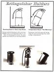 Runner Board or back Step Mount --Strong anodized aluminum with vinyl trim. Bolted to step or running board with two 2 1/4" bolts. No moving parts to break. The extinguisher nevers falls off as do old strap holders. Compartment Mount "The Hide-Away"-- Breakaway vinyl lock strop and strong hinge for ease of removing from small storage compartments.