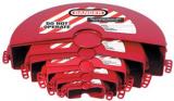 Outward/Inward Rotation Allows for Easier Installation & Storage. Surrounds the valve operating handle to protect against accidental valve opening. Each size rotates into itself to fit effectively into safety took boxes. Each size nests within the next larger size to save space in storage. Up to 4 workers can apply their personal safety locks. Red Lockout color identifies the safety lockout application.