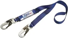 6 ft. (1.8m) double-leg 100% tie-off with tie-back web and snap hook at center, tie-back carabiner at leg ends.