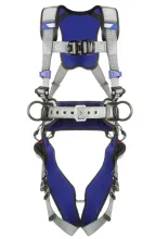 The 3M™ DBI-SALA® ExoFit™ X100 is designed with high-quality components that have been developed to enhance the harnesses safety and comfort while working at height on your job site. The X100 comfort harness is built with 6,000lb polyester webbing, nylon/polyester hybrid comfort padding and robust alloy steel hardware. The anti-slide back D-ring plate design helps reduce dorsal D-ring slide and enables a convenient adapter location to connect personal SRLs.