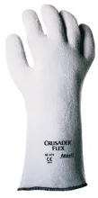An exclusive bonded nitrile coating helps protect against snags punctures abrasions and cuts while also enhancing dry grip. Crusader Flex gloves wear an average of four times longer than 24-ounce cotton hot mill gloves. For the best protection and comfort in moderate heat applications Crusader Flex gloves are the answer.