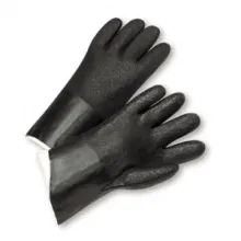 PVC exterior resists oil, grease, acids and solvents, and also provides moderate abrasion resistance; jersey lining offers cushioning and moderate insulation.