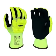 15 Gauge, ExtraFlex Plus® Hivis Engineered Liner With Black HCT® Micro Foam Nitrile Palm Coating, Thumb crotch Reinforcement, Touchscreen compatible, ANSI 5, the MicroFoam coating ensures excellent oil grip. Can be used in Metal Fabrication, Metal Stamping, Steel Processing, Steel Handling, and Recycling applications