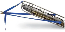 Faster to use than tying a harness out of web, the Low-Angle Litter Harness fits on the outside of the litter, delivering greater stability than connecting carabiners directly to the railing. Made of our 1-3/4 in (44 mm) flat web with a tensile strength of 44.5 kN (10,000 lbf), the center strap provides an adjustable backup to the other legs. The two outside straps attach just below the railing to the cross bar on the sides of the litter.