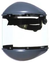 Broader deeper crown protector and wide wraparound window provides an extra margin of protection when harsh working conditions require it. Uses 3-C Headgear or three protective cap mounting mechanisms. (Faceshield Not Included)