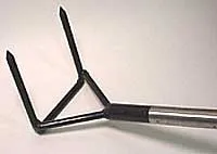 This hook was developed to find hiddenfire in deep seated smoldering fires normally found in dumps or dempsey dumpsters. The normal hook just won't pull trash in large quantaties. Our trash hook, because of it's two large six inch pointed prongs, will grasp debris in huge chunks. Available in the following sizes: 32", 40", 4', 6', 8', 10' with D-handle.