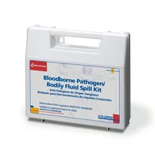 Our 24-piece, bloodborne pathogen/bodily fluid spill kit is specifically designed for biohazard clean-up for sites that require this kind of protection. It includes a complete head-to-toe defense package for fluid pick-up necessities and against bio-hazardous contaminants. This kit meets federal OSHA recommendations and contains an ample supply of garment disposal and biohazard bags. Products are contained in a sturdy, reusable plastic case that can be easily carried or mounted on a wall.
