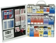 Solid steel case comes with a carrying handle and is wall mountable. Contents exceed the 2015 ANSI Class B requirements and are sufficient to treat 150 to 200 people.