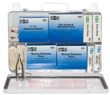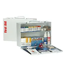 Solid steel case comes with a carrying handle and is wall mountable. Contents exceed the 2015 ANSI Class A requirements and are sufficient to treat 100 or more people.
