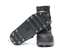 Impacto® Bigfoot Full Over Boot Protection with Ice Traction Cleats. Fits comfortably over footwear including steel toe boots and most winter boots. Drawstring top tightens to keep snow out of the overshoe. Waterproof uppers and reinforced taped seams keep your feet dry. Durable soles with ridges and heat-treated hex cleats for extra grip. The sole works with flat or heeled boots and shoes. Hook and loop and buckle closure provide a secure fit