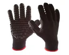 Impacto economical solution to vibration protection. Nylon/cotton knitted material ensures stretch and breathability. Palm coated with “pods” of lightweight cellular Chloroprene. This design ensures extreme comfort. Utilizing encapsulated air to cushion and dampen vibration, giving the user optimum dexterity with a lightweight feel and reduced bunching.
