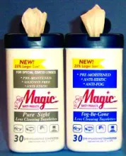 Pre-moistened lens cleaning towelettes are anti-static, silicone-free, safe for glass and plastic lenses. Generously sized, 4 ¾" x 8", these towelettes are pre-moistened with just the right amount of effective lens cleaning formula. Perfect for cleaning all types of glass, plastic or polycarbonate eyeglasses, safety goggles and face shields. Cardboard dispenser sits on table or can be wall mounted.