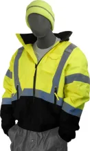 Hi-Vis Yellow Bomber Jacket, Black bottom , ANSI / ISEA 107-2010 Class 3 compliant, Removable Liner