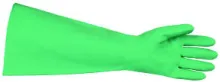 This 18 inch, 22 mil. glove features straight cuffs and a heavy duty, textured non-slip grip. The component materials comply with FDA regulations for food contact. Industrial applications include- food processing (red meat, poultry, dairy), chemical processing (petrochemicals, oil refining), machine operations, graphic arts, battery manufacturing and maintenance.