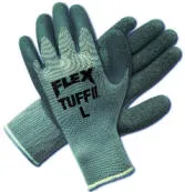 The Flex Tuff II offers all the features found in the Flex Tuff--a textured latex palm and finger dip for extra grip and durability and a 10 gauge cotton/ polyester shell for maximum flexibility. Industrial applications include assembly, concrete and brick, construction, electronic assembly, inspection and shipping and receiving.