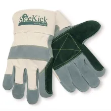 General purpose for those lighter jobs, Gunn pattern, low cost leather protection, knit wrist, safety cuff and gauntlet styles. General purpose applications requiring abrasion protection and breathabliity of leather and cotton, such as assembly, construction, fabricating, landscaping, maintenance, metal working, mining and sanitation.